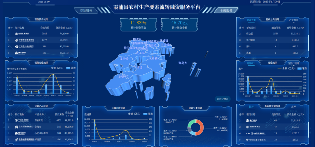 针对宁德农村渔排、茶园等生产要素确权难、融资难的痛点,宁德市国投公司下属汇融投资集团打造农村生产要素流转融资平台,推出渔排养殖贷、民宿贷等257种信贷产品,其中“林e贷”将林业要素转化为融资资产,经验在生猪养殖、茶叶种植等领域成功复制,唤醒乡村发展内生动力。其下属宁德市再担保公司则首创“渔排养殖贷”“菇棚改造贷”等22个特色担保产品,依托国家融资担保数字化平台、A8以及OA协同办公系统,实现业务全线上化办理。截至2025年6月末,累计担保额161.44亿元,为小微及“三农”减免担保费7903.41万元,以精准服务激活乡村产业活力。