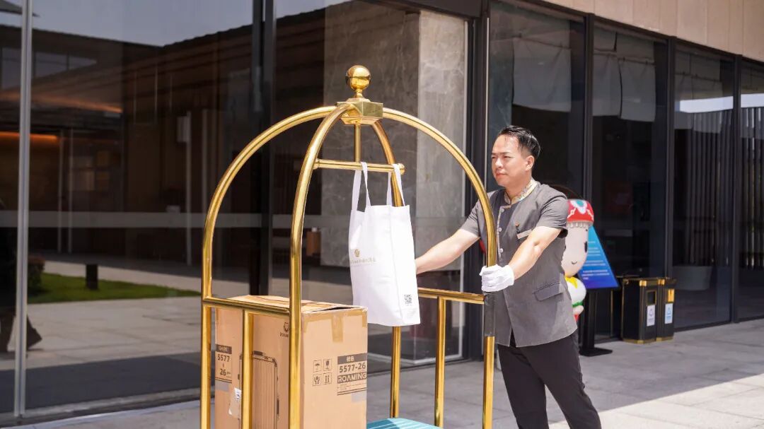 前厅部礼宾人员在为住客搬运行李