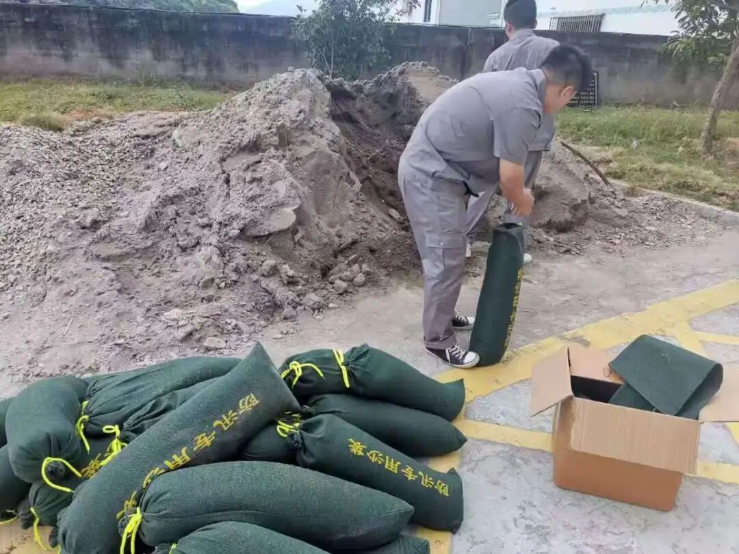 (公司工程部人员制作防汛沙袋保障园区安全)