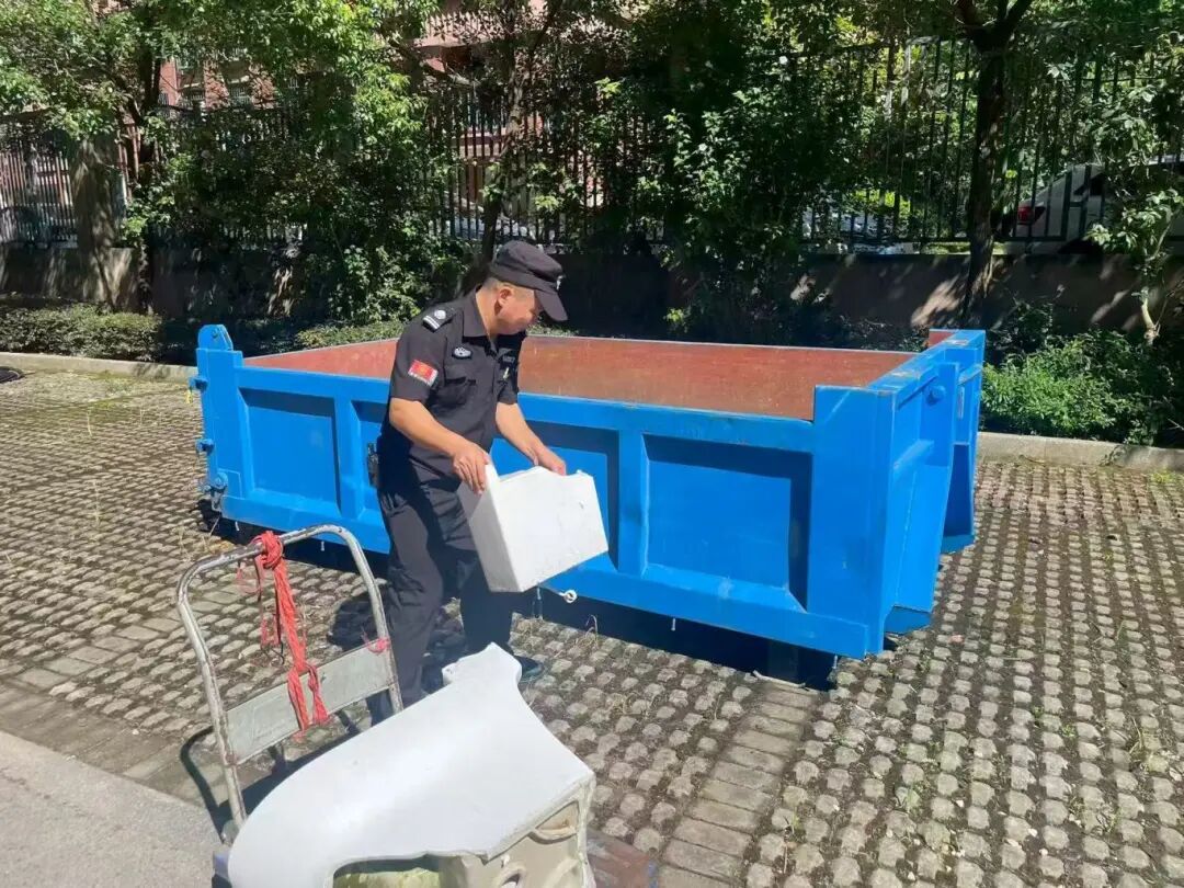 (安保人员清理园区杂物)