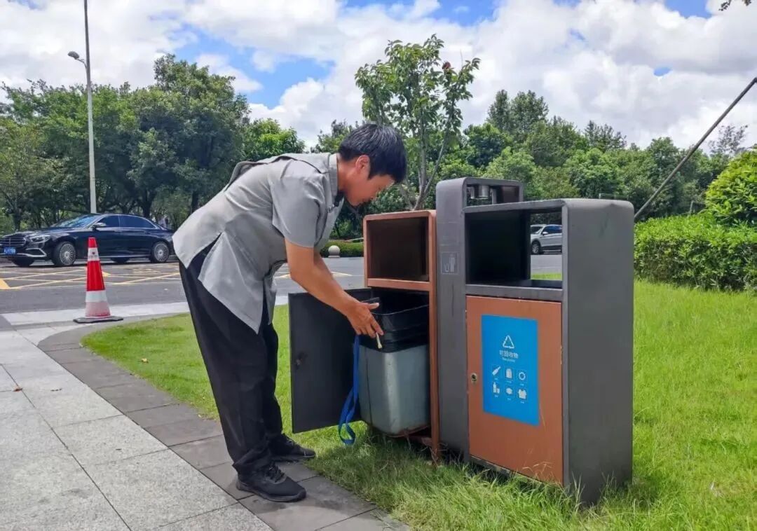 (保洁人员及时清理园区垃圾)